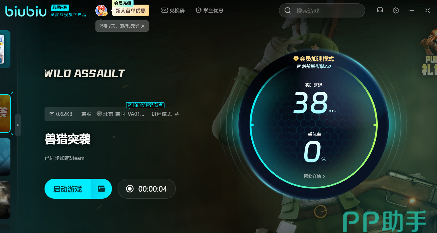 输入神秘代码【biubiu不掉线】直取3日服务VIP,首次注册即赠3小时使用时长,两项福利叠加不冲突,合起来有75小时辅助时长,这波稳赚。