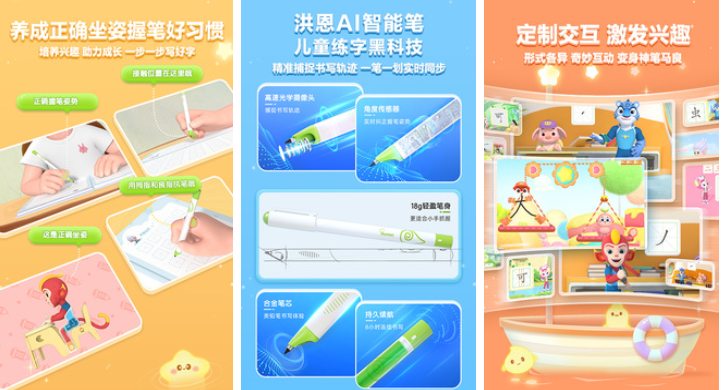 洪恩写字是专注于孩子写字练习的高分亲子作品,通过游戏AI手把手指导可让孩子联系书写,写出一手好看的汉字会让孩子获得成就感,游戏不仅教导孩子认真书写笔画,还提供了正确的书写姿势让孩子学习,卡通向美术的加持容易让孩子沉浸更加深书写印象,想让自己的孩子练习书写的朋友也可安装洪恩写字试试。