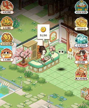 在进入游戏后,建议将整体玩法拆分为两个核心模块来理解:一个是客栈的模拟运营系统,另一个是关卡式的消除挑战模式。首先来看模拟经营部分,玩家将拥有属于自己的客栈,需要不断翻新房间、更换家具并提升设备等级,以此吸引更多顾客入住,从而积累金币和材料收益。这一部分的节奏较为轻松,侧重于长期规划与资源管理。