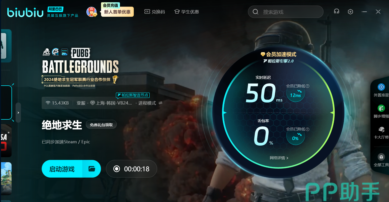 这款游戏的核心玩法源自“大逃杀”概念,最多100名玩家被投放到广阔的地图上,搜集武器、防具和物资,在不断缩小的安全区内与其他玩家对抗,最终生存下来的玩家或团队获得胜利。游玩时,绝地求生加速器用哪款呢?由于服务器在国外,延迟高、卡顿、掉线这些问题经常出现,来看小编的妙招。