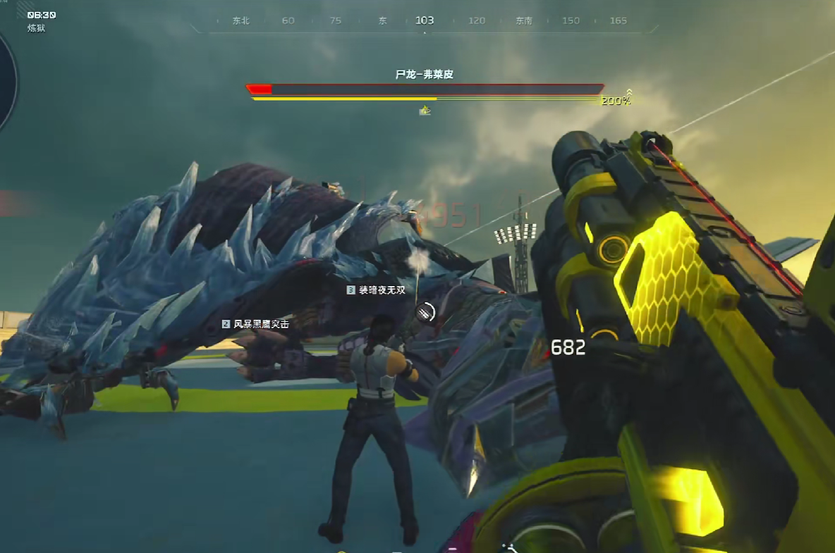 主武器首选飓风之龙——其核心优势在于近距射速快、容错率高、技能触发响应迅速。开启龙炎模式后,弹道具备显著穿透效果,可一发贯穿多目标,在狭窄空间或集群刷新点尤为高效,是爆发流不可替代的核心输出单元。