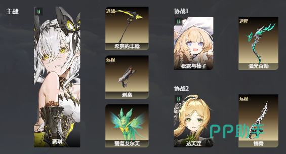另一种可选阵容是将达芙涅置于主战位置,搭配凯恩共同担任主力输出。协助位方面,建议选用辅助型角色菲娜,同时补充松露与榛子作为双治疗保障。这种配置特别适合新手期缺乏功能性支援角色的情况。达芙涅在此体系中主要承担回血与增益施加职责,可在战斗中持续恢复生命值并降低敌人移动速度,为主C创造安全输出环境。当遭遇BOSS时,切换至菲娜释放大招,可叠加属性伤害提升与追加伤害双重增益,使整体输出实现翻倍增长。若所挑战副本敌方伤害较高,协助位可进一步优化为松露+榛子的双奶组合,在充足续航支撑下,即便是难度较高的关卡也能顺利通过。