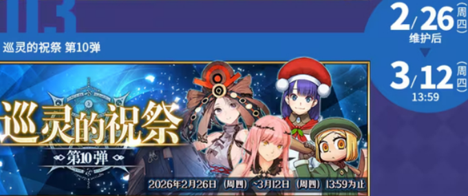 本月共开启三场大型活动:情人节限定活动、巡灵祝祭第10弹按惯例于节气节点上线,节奏稳定;而核心活动——2026新春庆贺活动,将于2月12日05:00正式开启,持续至2月26日23:59。该活动将整合日服冬日祭系列资源(含呼符、圣晶石、金苹果等),并延续国服特色加量传统。参考2025年数据,实际发放圣晶石数量高于日服同期,且冬日祭纪念礼装同步配发,本次亦大概率沿用该模式。