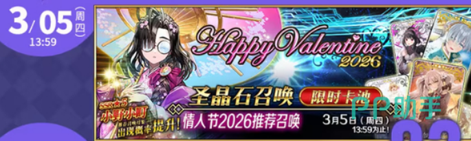 从者实装方面,情人节活动后将追加新四星从者小野小町;同时开放常驻五星女性从者与剧情限定五星女性从者双周替卡池(具体名单未提前公示)。新春活动同步推出「第二部通关应援福袋」第三期,该机制对标美服2025年11月感恩节福袋,目前日服尚未实装。