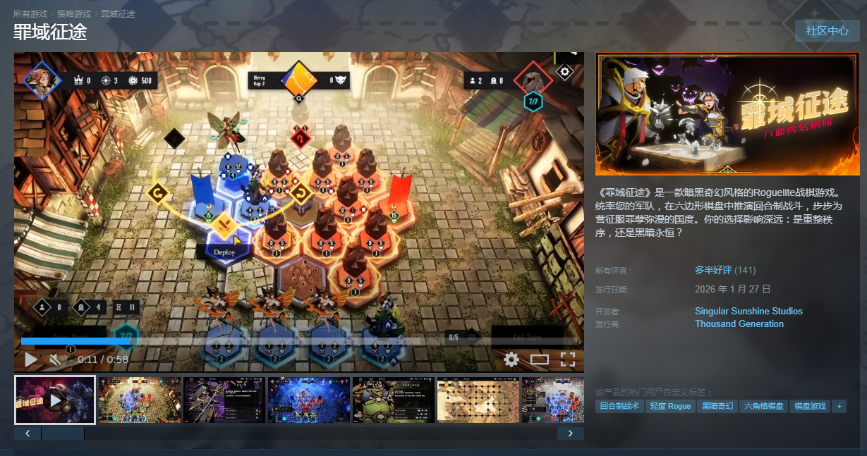 综上,《罪域征途》已于2026年1月27日正式发售。其融合六边形战术纵深、Roguelike不可复现性与高自由度卡组构建的设计理念,为策略战棋品类注入了新维度。若你偏好兼具操作精度与策略深度的暗黑风格作品,现在即可通过Steam平台获取本作,开启你的罪域远征。