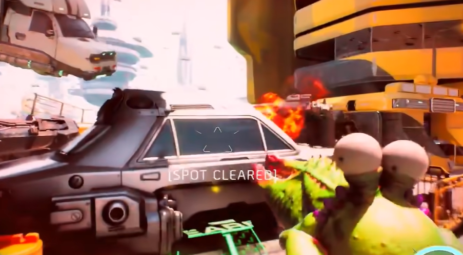 游戏核心移动机制围绕“滑板系统”深度设计:玩家可借助滑板沿栏杆疾驰、跃上建筑立面、在垂直空间中完成连续转向与腾跃。该机制大幅拓展了探索维度,使星球表面与立体城市结构形成有机联动,配合高空悬停射击,带来兼具策略性与爽快感的战斗节奏。