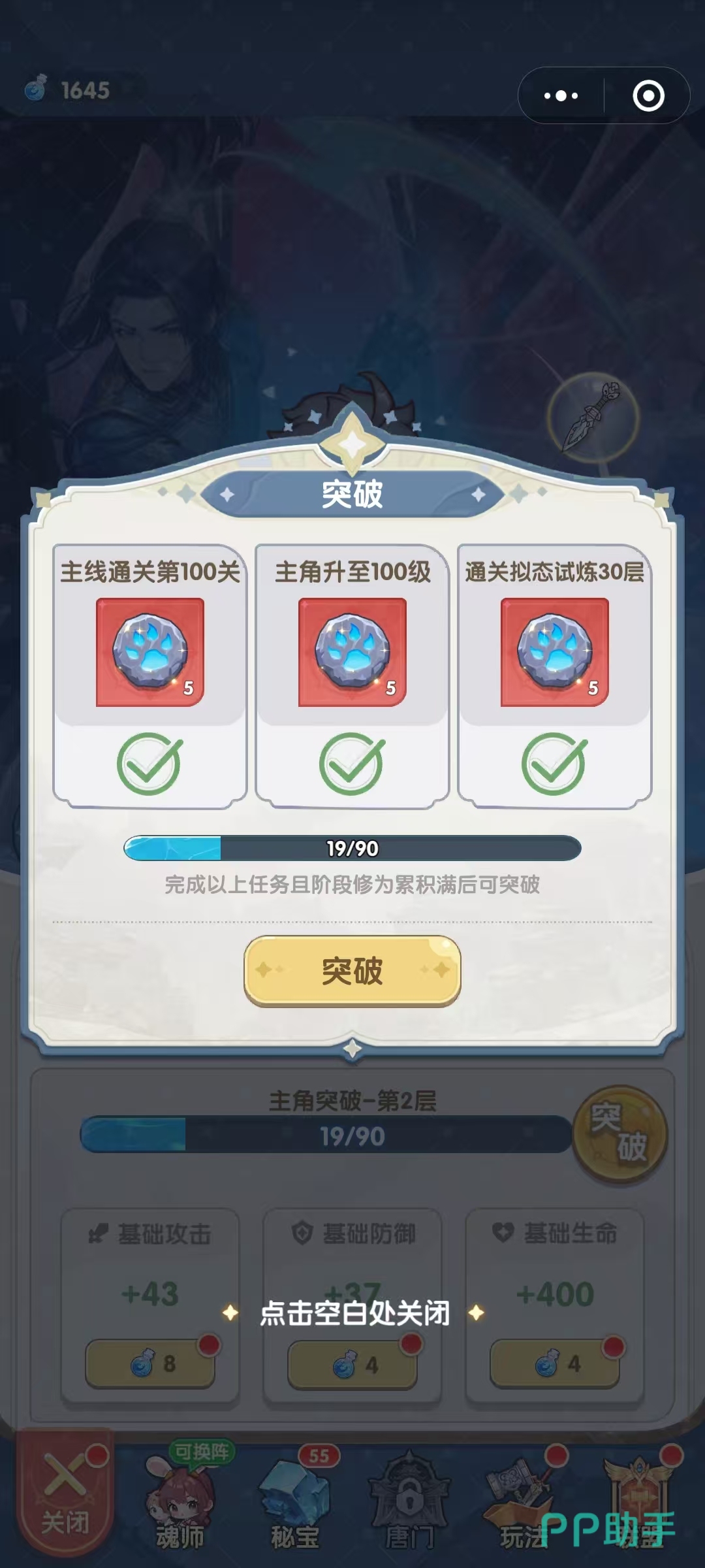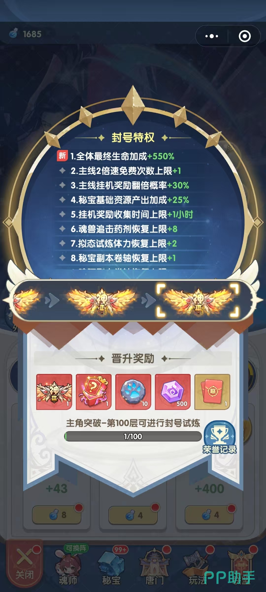 要完成主角的每一次封号晋升,必须成功达成对应的突破任务。这些任务会根据当前所处阶段的不同而有所变化。在游戏初期,晋升条件较为基础,例如只需通过第100关即可完成魂士阶段的突破。随着等级提高,后续晋升所需条件也愈发严苛,可能包括击败强力Boss、获取高年限魂环或稀有魂骨,甚至需要完成特定剧情挑战。这种层层递进的设计,使每次晋升都充满挑战性,也让玩家感受到成长过程中的成就感与仪式感。