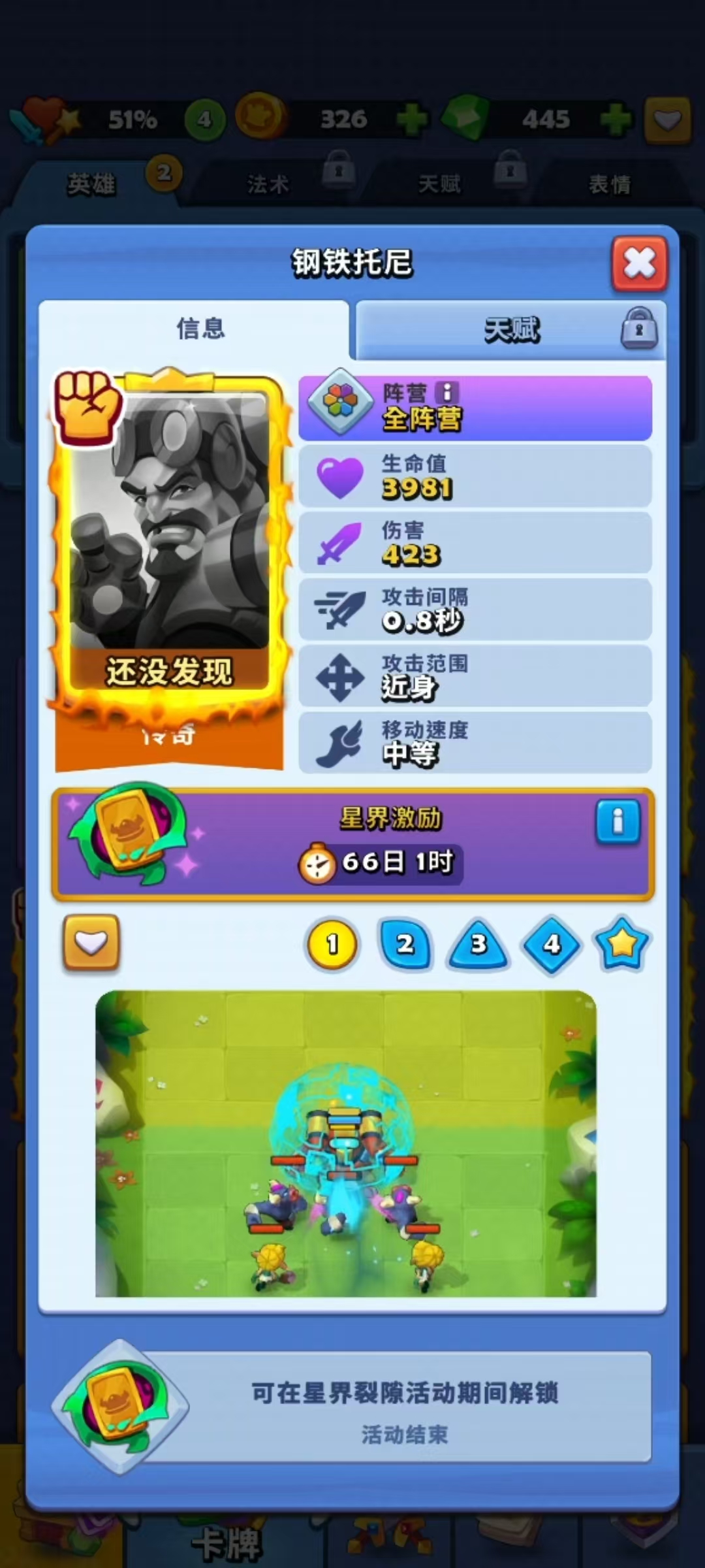 第四位推荐的是钢铁托尼,属于传奇级别的卡牌角色。由于获取难度较高,通常在中后期才投入使用。他的技能包含发射激光,对多个目标造成高额伤害,随后落地引发大范围爆炸,击晕区域内所有敌人。战斗开始时自动获得基于最大生命值百分比计算的护盾,使其在开局阶段就具备极强的抗压能力,不易被敌方爆发秒杀。第五位推荐的是南瓜杰克,其技能可在大范围内施加“疯狂”状态,使敌方单位失去判断,随机攻击友军或自身。这一效果能有效分散对手火力,减轻前排压力。更特殊的是,当南瓜杰克受到致命伤害时并不会立即阵亡,而是进入不死状态继续作战一段时间,进一步延长了其承伤周期。