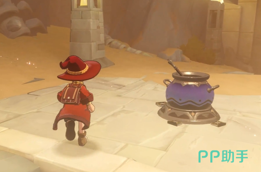 首先来到紫色大锅的位置,这里会提示你需要收集三块矿石晶块以合成开门所需的钥匙。从起点出发,先向左侧探索,会看到两堵并列的石墙。使用精灵攻击其中一面墙,将其击碎后便可开辟出一条新的路径。