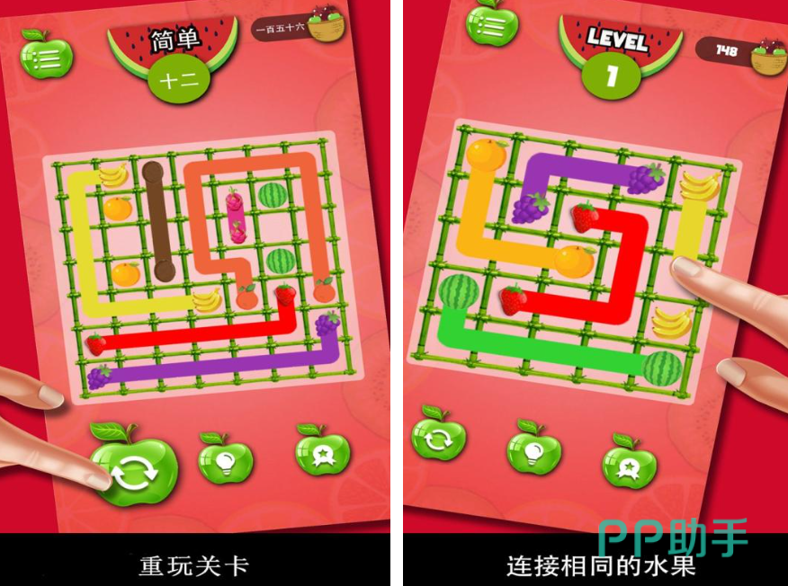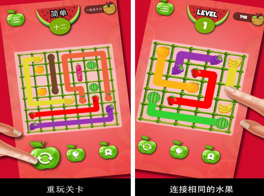 水果桥这款游戏特别的烧脑,玩家在体验的时候,需要开动脑筋,思考水果到底该如何连接。不过整个游戏的画面特别的清新,色彩也是比较鲜明的,所以说玩家在体验游戏的时候,能够获得不错的视觉享受。在游戏里面涉及到的模式比较多,玩家也可以选择自己所喜欢的模式去体验。如果玩家在体验游戏时遇到困难的话,也可以根据提示功能来有效的解决。