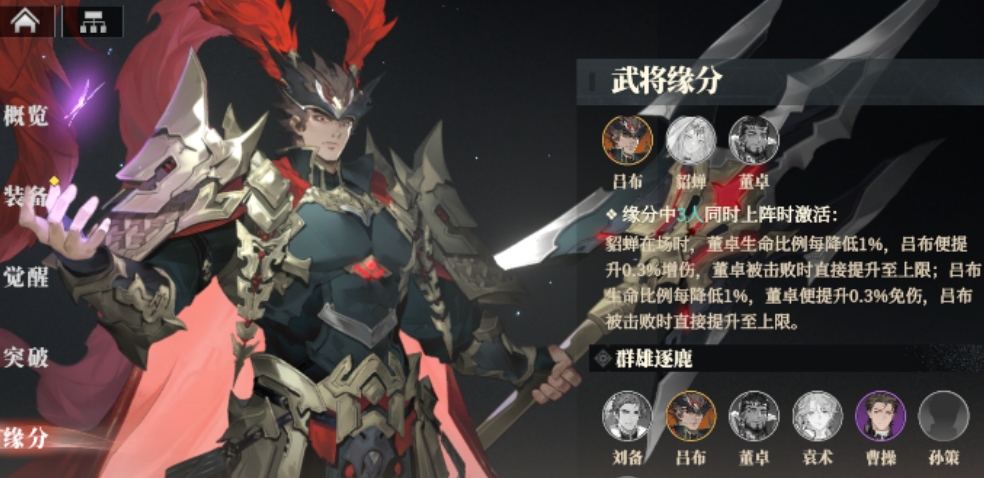 在游戏中,玩家若想深入了解武将缘分羁绊的效果,只需进入武将界面,在最下方那一栏就可以看见武将缘分的选项,武将缘分其实简单来说,就是当特定组合的武将同时出现在战场上并共同上阵时,所触发的一种能够为整个战斗局势带来积极影响的增益效果,这种增益并非是单一模式的,而是呈现出多样化的特点需求。
