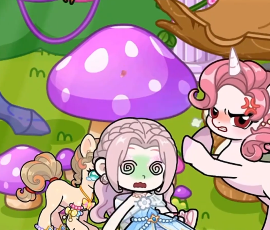 初入异界,公主主动接触正在劳作的陆马,却因身份不明遭拒。她并未退却,转而以随身饰品作为善意信物,成功建立初步信任。随后,附近独角兽突发失控,施放高能魔法冲击。危急时刻,公主迅速护住幼年陆马,并以身体承受攻击,此举成为扭转局势的关键转折点。