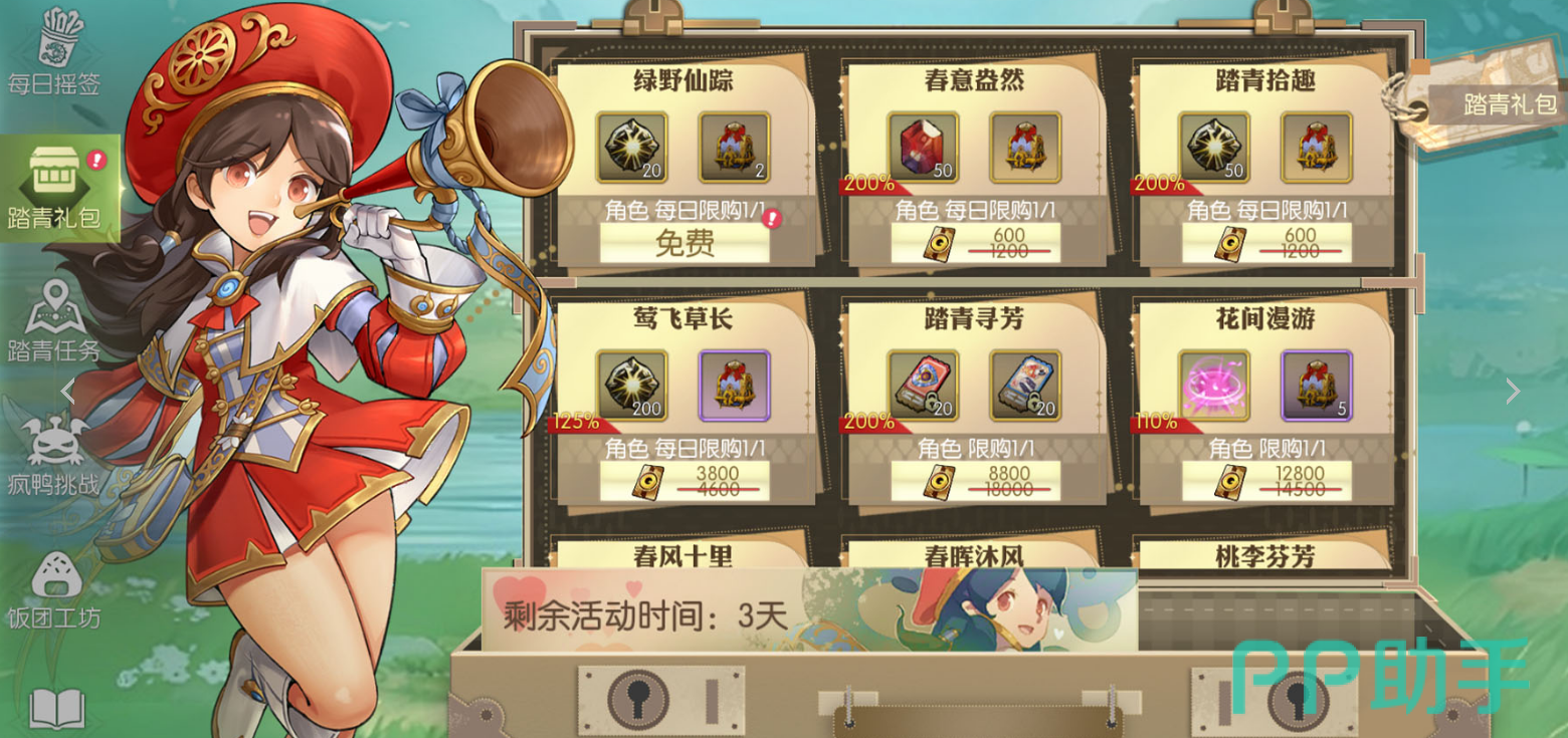 而对于那些喜欢超值礼包的玩家,“踏青礼包”自然也不能错过。活动期间,特别推出了限时特价的礼包,让你以优惠的价格获得更多有用的道具和奖励。对于那些有购买需求的小伙伴来说,这可是大大节省了资源和时间!