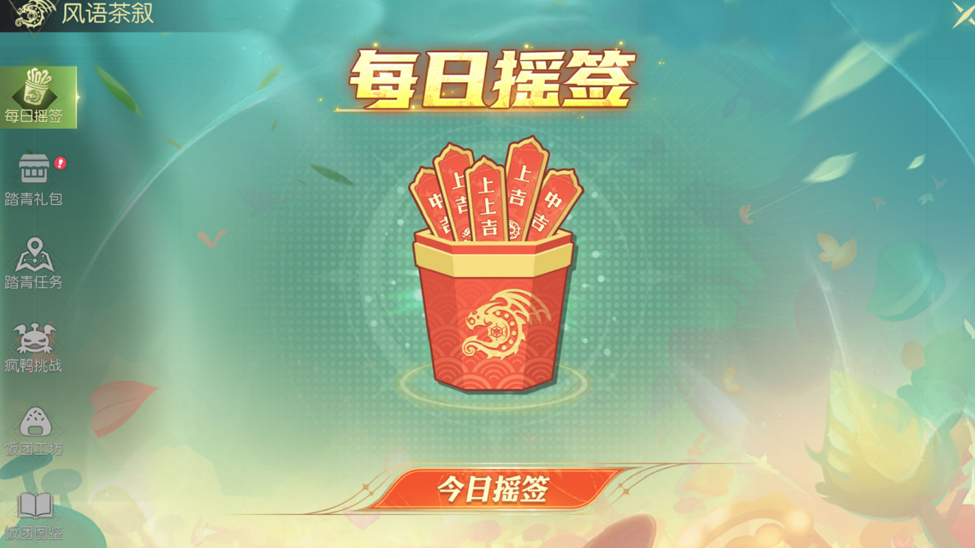活动的第一大亮点是“每日摇签”。想要每天都有点小幸运,那可得记得准时摇一摇,每天的摇签可是会给你带来丰厚的奖品哦。摇签的奖励包括了饭团制作材料、资源以及运势提升的小道具,既能提升游戏进度,又能增加一些幸运感,何乐而不为呢?
