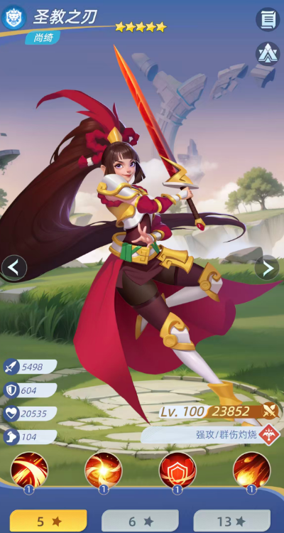 灼烧队的输出基石,首选五星角色尚绮。其核心机制在于群体物理伤害与灼烧施加的双重稳定性:对敌方全体造成95%物理伤害,每次攻击均有30%基础概率附加【灼烧】状态。该状态每回合扣除目标当前生命值,数值为施法者攻击力的20%,可持续2回合;灼烧层数最高可叠至5层,且随层数提升,尚绮自身总伤增益同步激活——满层时伤害提升114%,灼烧触发率亦提升至40%。此外,她还具备治疗效果+10%、每次行动后获得10%闪避率的被动加成,使其在承担主C职责的同时拥有不俗的生存韧性与续航能力。