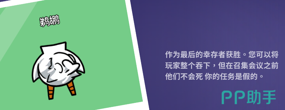 鹈鹕这一角色虽未配备直接的攻击手段,却拥有吞噬之力,它能够无视常规的投票流程,张开巨喙将所有玩家纳入腹中,并与其中的受害者展开私密对话,有趣的是,在会议召开之前,那些被吞食的玩家并不会立即显示为死亡状态,仿佛置身于一个神秘的时空夹缝之中,唯有当会议正式开启时,他们的命运才会被最终裁定,倘若鹈鹕遭遇不测被刀杀,那么其腹中的幸存者便会自动重获自由,理想状况下,鹈鹕应当在确保自身安危的前提下进行行动。