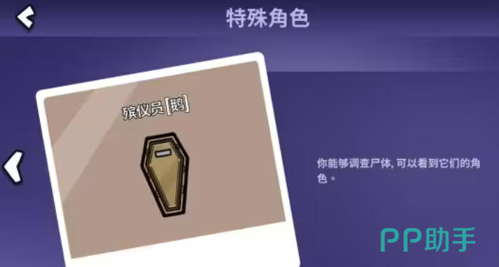 殡仪员肩负着鉴定死者身份的任务,发现尸体后,他会施展神秘法术,三秒之后,伴随着诡异的音效传来,真相随之大白,如此一来在后续的会议讨论中,可以更快的找到死者的真实身份。