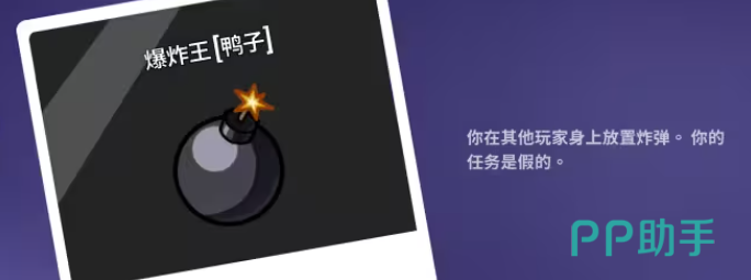 爆炸王手中的炸弹威力惊人且不分敌我随机爆炸,即使不慎炸死了加拿大鹅也不会触发报警机制,倒计时结束后最后一个持炸弹的玩家会被炸,炸弹可以传递给他人,传递过程中可能会有延迟,如果在快爆炸的时候发起了会议,那么炸弹会在会议后爆炸,且时间也会增加5秒,有一种大胆的战术是传完炸弹马上关门然后躲进柜子里观看爆炸过程,此外炸弹王的充能速度比其他鸭子慢,需要耐心等待时机的到来。
