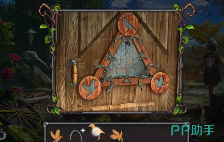 在中间空挂钩的地方是用之前收的宝石,光线会随着宝石折射到画像上面对画像进行检查,玩家会发现画像有点特色问题,对画像使用铁钉玩家会进入小游戏,完成小游戏的挑战之后会获得相应的雕像。雕像收集完毕之后,玩家继续回到塔楼的一楼,用铁钉打开柜子,拿到手柄和一个鸟的雕像,获得一个完整的镰刀道具,之后再使用鸟雕像获得钥匙,在左边的抽屉里使用钥匙获取到门把手,这个塔内的解谜基本上完成。玩家获得的道具不要丢失,在后续剧情中都是有重要的作用。