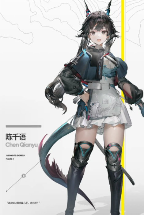 陈千语为特勤序列干员,真龙后裔血统赋予其远超常人的身体机能与神经反应速度。自幼接受系统化武艺训练与战术思维培养,心理抗压能力与实战决策效率均属顶尖水平。大招启动后首先将目标击飞至空中,随即展开总计8次连续斩击——首击施加破韧状态,后续7次均造成物理伤害,全程具备稳定破防与高频率压制双重效能。