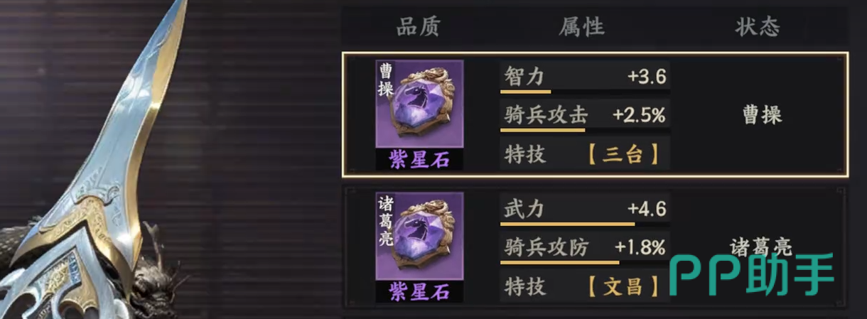 在星石搭配过程中,必须结合武将的职业特性进行精准配置。以赵云、马超为代表的武力型骑兵,主要承担战场突击与高额输出任务,其核心属性为武力值。因此,在星石选择上应优先装配增加武力的种类,最大化输出能力。副属性方面,推荐选择“骑兵攻击力提升”、“冲锋伤害增加”或“移动速度加成”等与兵种特性契合的词条,进一步放大机动与爆发优势。