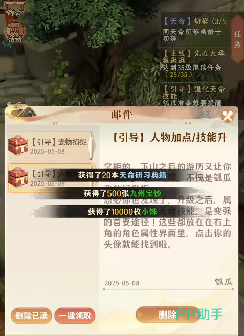 日常资源供给路径清晰:每日副本、限时活动、主线任务均提供稳定铜钱、宝砂、元气产出,整体耗时可控,可持续支撑角色等级成长。对于偏好挂机体验的玩家,游戏内置智能任务导引系统,全程无断点指引;部分章节通关后将解锁后台挂机副本,实现离线经验获取。