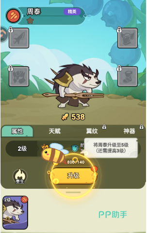 周泰:典型坦克型武将,以“悍不畏死”的战场表现著称。手持长枪冲锋在前,背部尖刺设计不仅强化视觉张力,亦暗示其被动减伤或反伤机制。当前等级为2级,基础生命值偏低,但已具备硬抗BOSS三次重击的承伤能力,为后排输出争取关键输出窗口。升至5级后,防御属性将实现质变式增长,面板防御数值显著跃升。战斗胜利后可获取资源奖励,用于角色升级、装备强化与天赋解锁,形成正向成长循环。