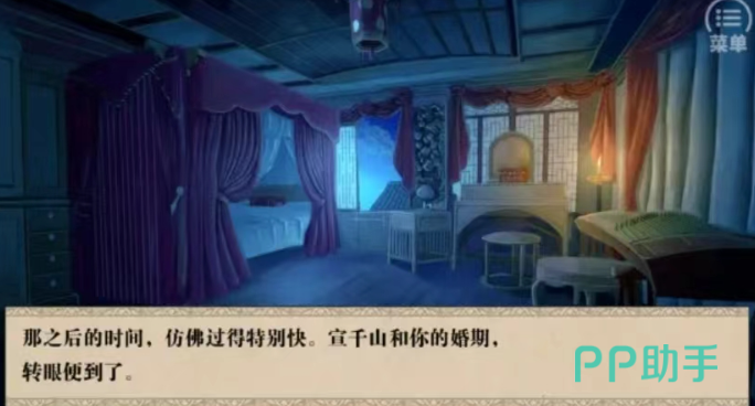 婚后的攻略才正式开始,宣千山这条线婚后结局有三个,有个是叛达成条件是允许墨离参军或者声望达到9000以上,达成条件的任意一个都会触发结局。结局互乡关是好结局,需要玩家达成允许墨离参军并且声望达到9000以上,史书上的一页,不允许墨离参军且声望达到9000以下,下毒独死宣千山。宣千山的结局都不是特别好,都在婚后29年发生,玩家要做好积攒准备,通过积善来赚取声望,其余都是选择向。