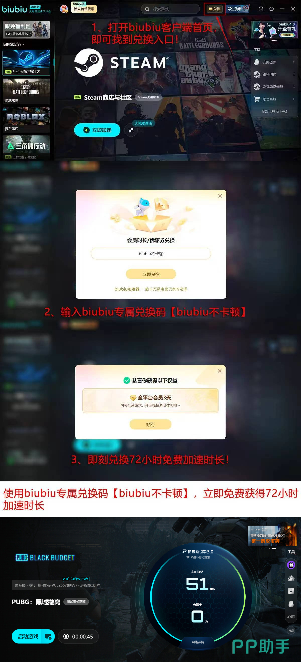 目前平台推出新人友好计划:新注册用户完成基础任务即可获得测试资格抽取机会;首登即享24小时零门槛专属加速服务;输入口令【biubiu不卡顿】,额外延长72小时使用权限,总计可体验96小时高质量加速服务,充分满足黑域撤离高强度组队需求。