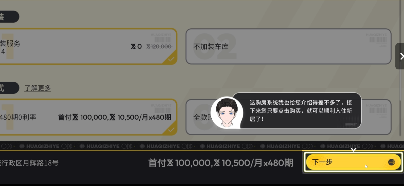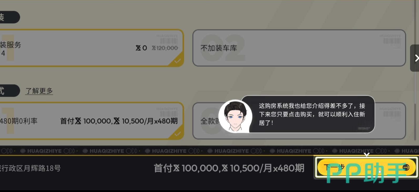 所有房产交易均由游戏内专属机构“华骑置业”统一运营,其品牌主张“不造房子,只造家”,强调情感归属与生活质感。当前可购住宅包括月加青年公寓(入门级)、盈晖庭院(中产优选)、万间独墅(高端定制)三大类型,每套房源均标注明确售价及解锁状态。当玩家选定目标房产但账户余额不足时,系统将自动触发房贷申请弹窗。此时需自主设定贷款金额、还款周期(最长可达30年游戏内时间)与对应年化利率——该利率随房产总价动态浮动,体现差异化金融策略。需注意:泊港公寓与寰宇汇月台尚处建设阶段,暂未开放购买,预计将在后续版本更新中实装。