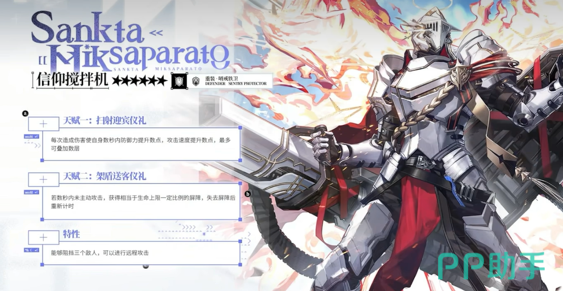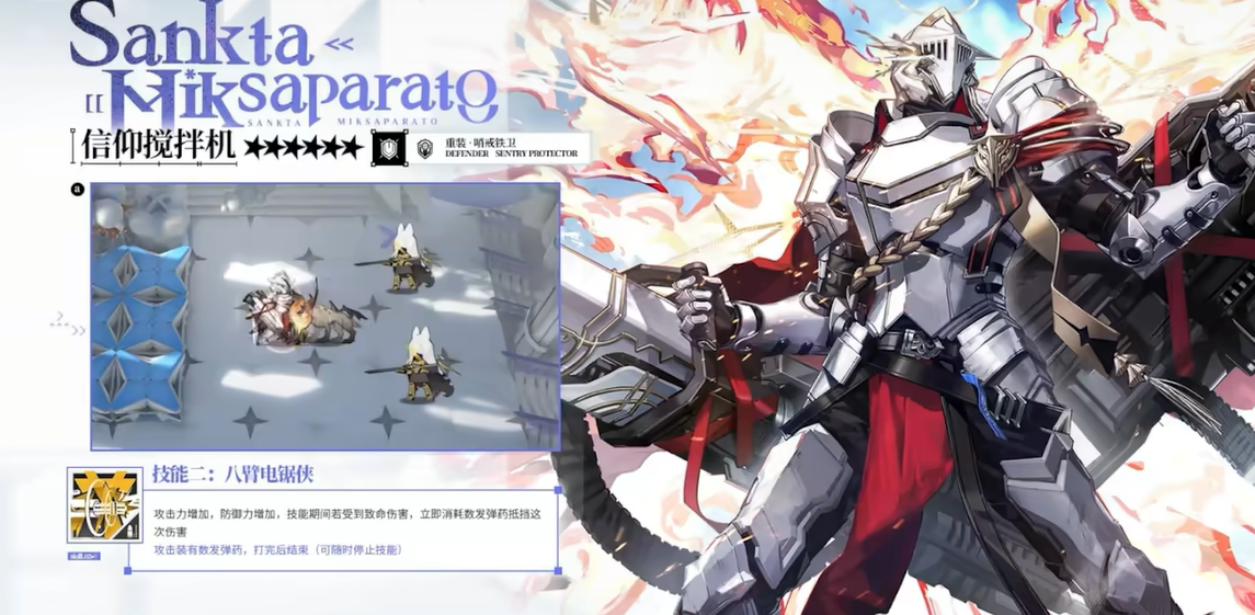 以上就是明日方舟信仰搅拌机介绍 的内容了。信仰搅拌机是位集强力防守与输出能力于一身的重装干员,适合在需要强大前线控制与支援的战斗中使用。他的技能与天赋设计不仅能保证自己有着极强的生存能力,还能为队友提供有力的支援。