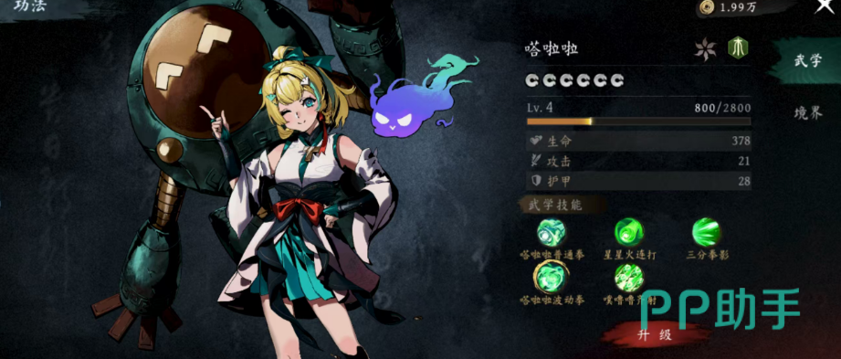 首位推荐的角色是嗒啦啦,她以释放内力弹为主要攻击方式。每次命中目标后,可附加5%的木属性伤害。由于其属性为木,在面对相克敌人时能发挥更强压制力。当使用连击技能时,有一定概率触发暴击效果,暴击成功后将额外发射3枚内力弹,且每发输出数值等同于普通攻击。此外,她的进阶技能“三分拳影”可根据场上已释放的内力弹数量提升整体伤害,并对敌方第二排单位发动总计6次范围打击,具备出色的持续输出能力。