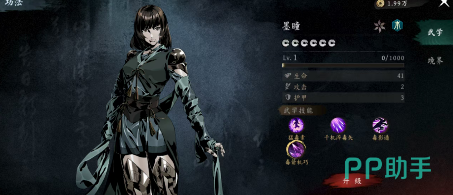 第三位值得培养的角色是墨瞳,她是走毒系流派的核心人选。墨瞳所施加的毒素不仅能持续削弱敌人,还能通过后期增益实现高达50%的毒素爆发伤害提升。其关键技能“千机淬毒石”需消耗30点内力,释放后可远程射出9支毒箭,每支造成40%攻击力的水属性伤害,并附带中毒状态。这一技能兼具范围压制与持续伤害特性,使其在面对群体目标时尤为强势,作为水属性角色,她的多数技能也都围绕水系范围打击展开。