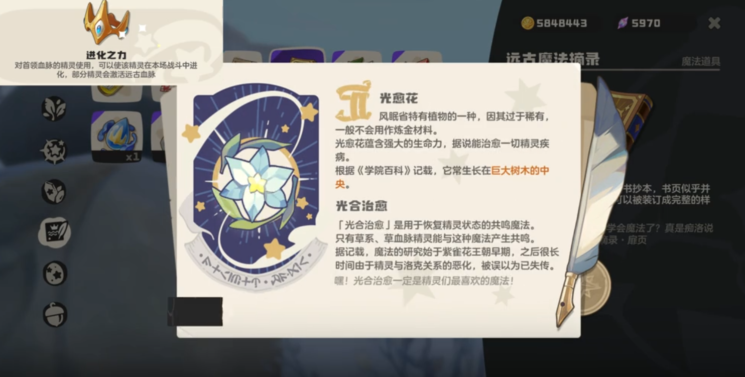 游戏中还引入了血脉魔法系统,可为特定属性精灵提供战斗增益。每位玩家每场战斗均可使用一次,实用性较强。主线推进过程中,玩家将获得“远古魔法摘录”,需在背包中查看并领取。此后可根据指引前往各区域收集更多类型的血脉魔法,进一步强化队伍实力。