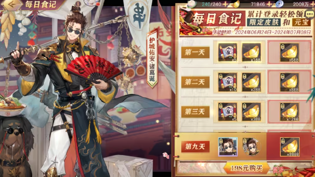 在活动期间,玩家累计登录游戏就可以免费获取60个武将招募券,6204个元宝。累计登录9天,还可以获得4周年限定肌肤以及对应的头像框。在奖励加码之后,还能额外的得到35,172个元宝。