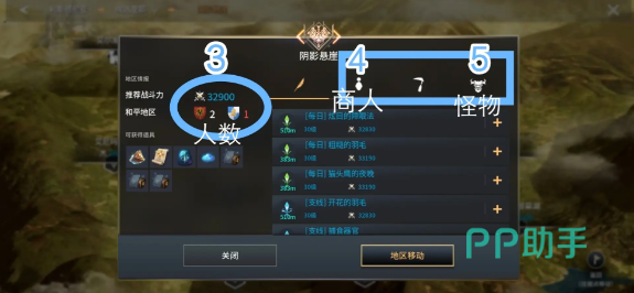 当你进入一张全新的区域时,想要迅速掌握当前地图的敌情分布,可点击界面左上角的地球标志。打开世界地图后,选择你所处的地图分区,再进一步进入具体的场地区块,即可清晰看到该区域内活跃的玩家数量、商贩位置以及各类怪物的分布情况。