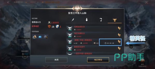 若要精准查找精英怪的位置信息,只需点击屏幕右侧的怪物标识按钮。系统会弹出详细的怪物列表,其中明确标注了野怪首领、精英单位和普通怪物三类目标。通过该列表,你能实时获取精英怪与你的距离数值,同时还能查看其具体战斗力等级,便于提前制定作战方案。