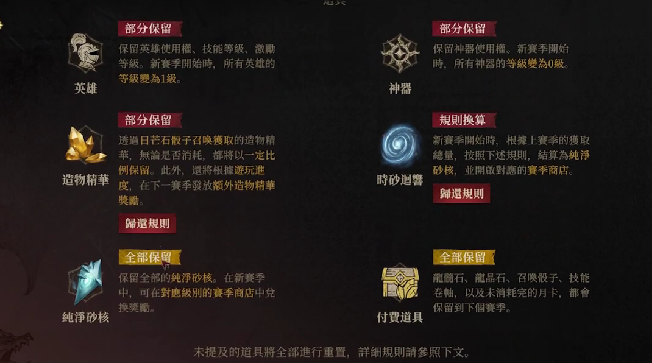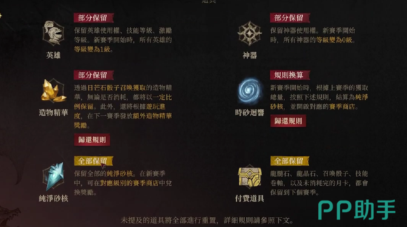 当玩家进入到新赛季时,实际上是需要重新创建角色的,有几个仅部分保留的内容需要玩家进行关注。
