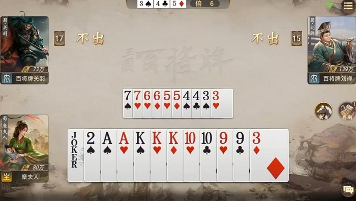 游戏底层采用经典三人斗地主框架,但在策略维度进行了深度拓展:每位武将配备差异化主动技能,引入名驹系统增强手牌联动性,并融入残局推演、明暗主身份识别等机制,显著提升每局的决策深度与变化空间。