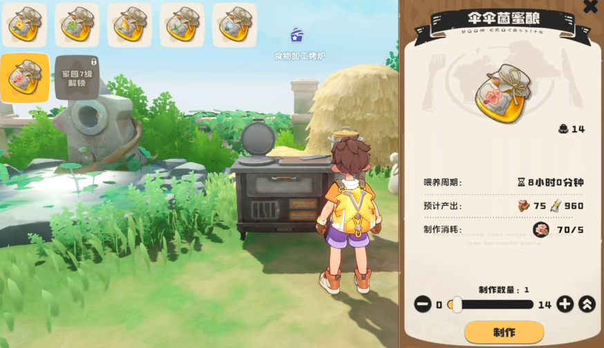 田块解锁完成后,玩家可在家园商店购置各类种子,涵盖基础作物与稀有品种。成熟作物可运送至家园工具台进行深加工,转化为多种功能性食物。这些成品食物不仅能用于宠物喂养,还能反向提升家园舒适度,形成正向循环的养成闭环。