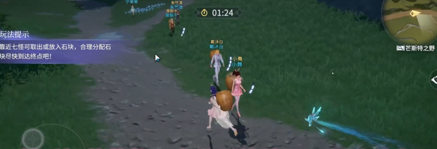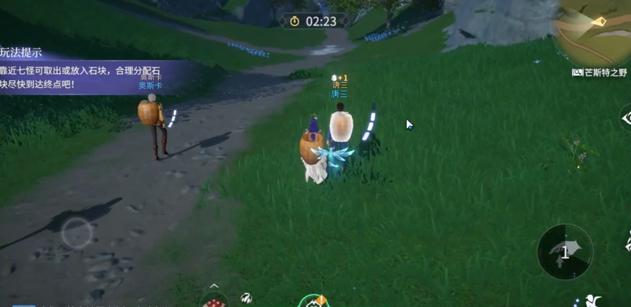 完成减负操作后,前往奥斯卡所在位置,他目前持有两块石头,需将其中一块交给宁荣荣,另一块交给朱竹清。全部调配完成后,倒计时也接近尾声。此时应观察角色位置,确保靠近终点区域,关键步骤是将戴沐白身上的所有石头卸下,进行评分结算。此举会触发团队整体速度提升效果,最终全员同步抵达终点,任务即可成功完成。