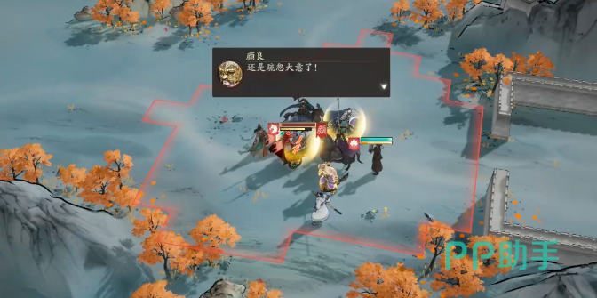 其余己方单位应分散部署于棋盘两侧,通过站位拉开与敌方双将的距离,使其无法触发近距离增益效果,同时起到诱导作用。注意保留典韦的伤害分摊技能以应对突发情况。整体阵型布置完成后即可进入战斗阶段。由于我方单位分布较广,迫使颜良与文丑分离,从而削弱其核心机制,大幅降低主战场整体压力。
