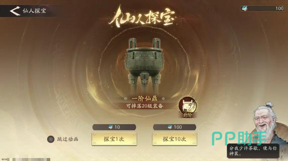 在装备获取方面,群英会系统迎来重要升级。除了新增挑战模式外,还推出了全新玩法——“仙人探宝”。玩家可通过完成主线或支线任务获得“食之精”,并使用该道具参与探宝抽取高品质装备。初始阶段即可稳定获取20级装备,随着群英会等级提升,更有机会抽中更高级别的稀有装备。