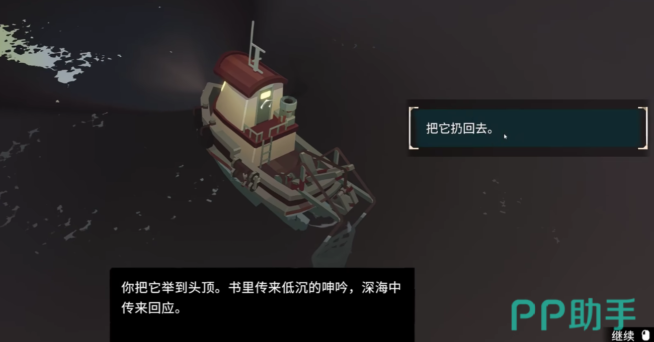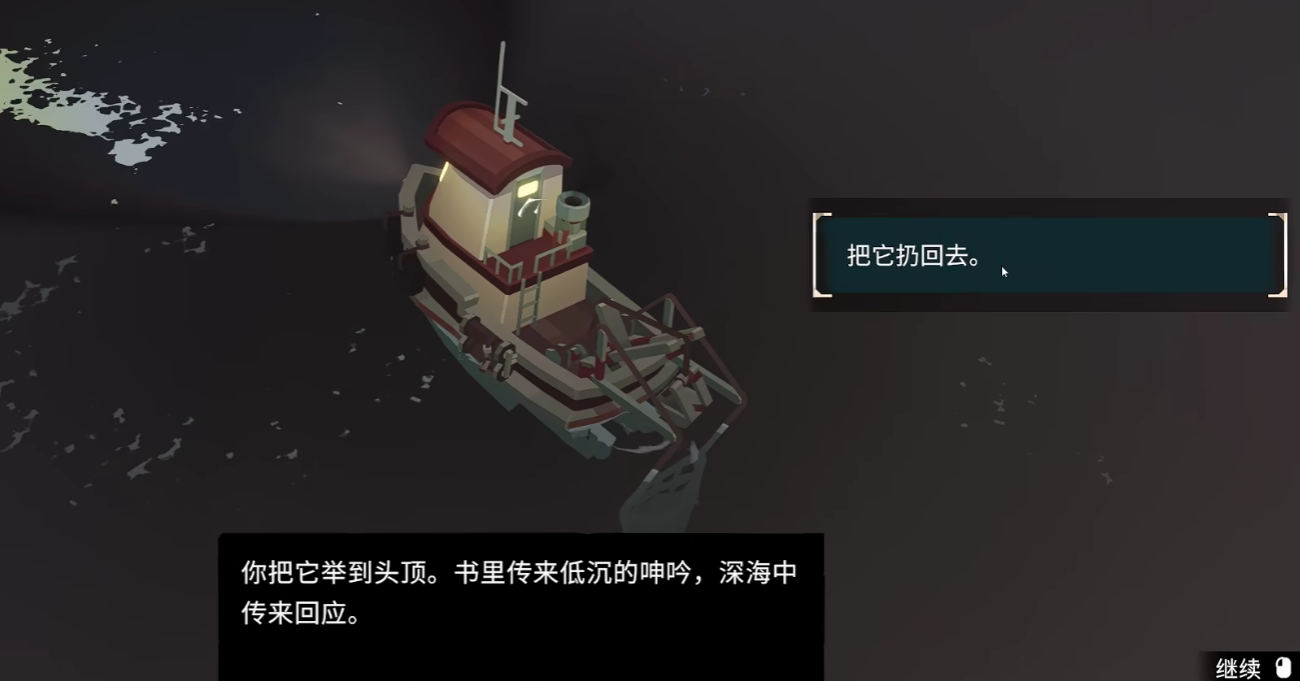 最终玩家的船只会沉没在海洋之中,成为克苏鲁的祭品,实际上,寻找到老镇长之后玩家必定会触发游戏内的BEDEND,所以如若玩家想要进行完美结局的挑战,建议是不要去寻找老镇长,而是放任他继续疯狂。