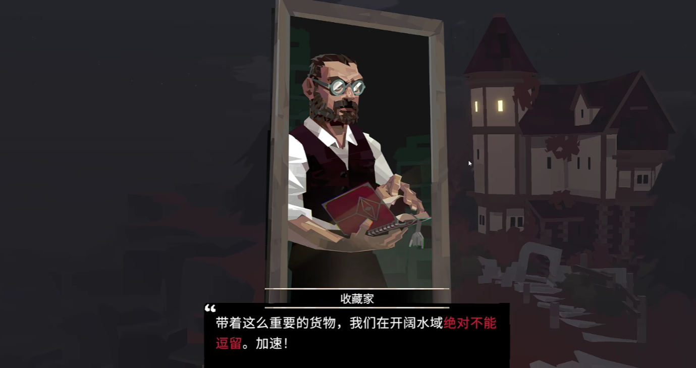 在码头内,玩家再次进行对话,就能够触发隐藏的剧情内容了,此时,玩家可以在码头看到一个疯狂的老人,这个老人实际上就是老镇长,在和老镇长成功对话之后,玩家即刻返航,就会触发最后的尾声任务。