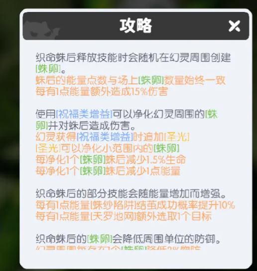 织命蛛后属于高动态压力型Boss,其核心机制为“未及时清除蛛卵将导致战局崩溃”。蛛卵不仅提升自身攻击力,还会施加控制效果,持续削弱我方防御力。随着层数提升,蛛卵密度递增,若未及时清理则无法推进战斗进程。唯一有效清除手段为祝福类增益效果。因此阵容需重点配置士气类Buff角色:英雄导师与烈焰魔女均可稳定附加士气增益;远古魔像的斗志效果可显著延长队伍续航时间;进阶选择智慧女神,其斗志机制兼具承伤与抗控能力,大幅增强团队生存韧性。