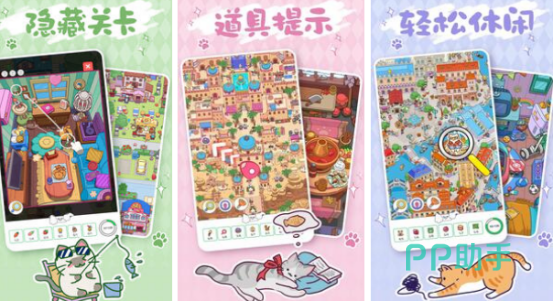 玩家进入游戏之后,仿佛来到猫咪世界这款特色的单机游戏中隐藏着各种各样的小物品,这些物品全部都被猫咪藏起来,穿梭在猫猫世界探索每个不同的角落。游戏整体玩法休闲又可爱,不同的场景等待你前来探索,比如夏日清凉的沙滩,草丛等等所有场景设计相当精美,赶快来到猫猫世界展开探险吧。