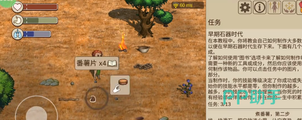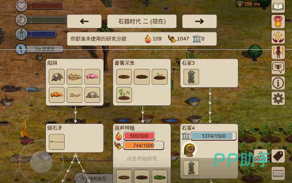 玩家可自由选择研究路径,通过获取对应类型的分数来推进科技进程。对于初入石器时代的新人玩家而言,首要任务是解锁挖掘棍的制作配方。随后可进一步研究扁食类食物,例如番薯片,这类食品能显著提升角色饱腹感,保障基本生存需求。此外,也可尝试开发其他食物类型,系统对此并无严格限制。若对初期操作感到迷茫,不妨参考上述发展思路作为起点。