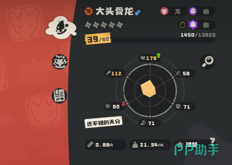 从基础面板来看,大头骨龙总种族值为587点,在当前版本环境中属于中上水准。其属性分配侧重明确:物攻项获得显著强化,为技能输出提供坚实支撑;双防数值虽未达顶尖,但足以应对常规压制手段,配合合理技能组合可有效延长站场时间,整体属性结构兼顾进攻性与容错率。