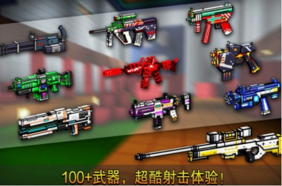 这款采用像素风格,为大家所设置的多人射击游戏,既能帮助玩家在生存对战等游戏当中,享受战斗的快乐,也能打造出自己喜欢的各种角色,融入了沙盒创造这样的玩法。展开多人竞技时,既能看到很多的放款人,还有100多种超级炫酷的武器,大家通过自由选择以后,可加入复杂的战场。无论是自定义枪械皮肤,还是地图模式,都使这款游戏具有极高自由度。